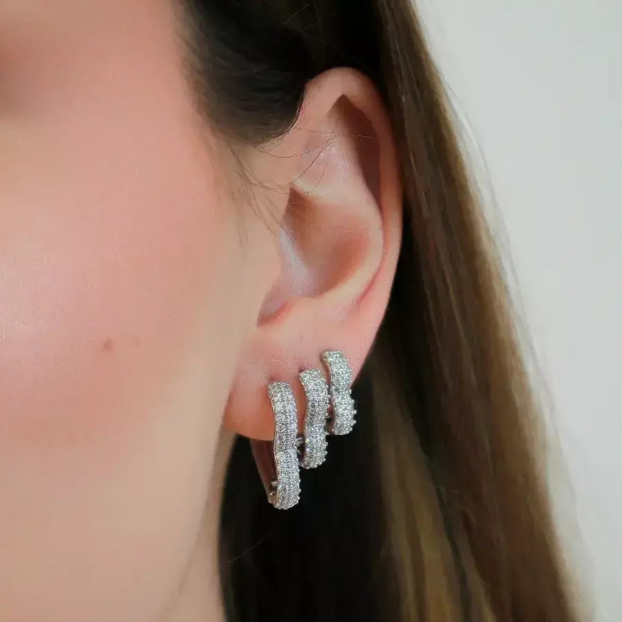 Produzido com banho de ródio branco, o trio oferece um acabamento sofisticado e duradouro, realçando seu visual com um toque de elegância. Proporciona conforto sem abrir mão da presença.